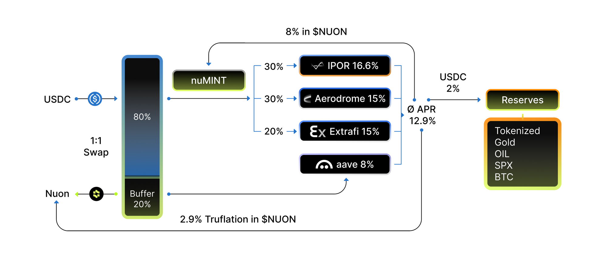Finally, Nuon v2 also directs a percentage of the yields to purchase assets that typically beat inflation in the Reserve.