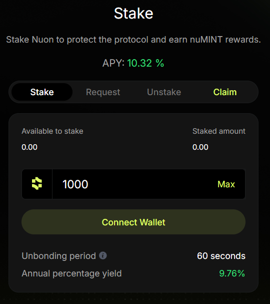 If you are happy to take more risks with Nuon to get more out of the v2 protocol, you can decide to stake your freshly minted Nuon.