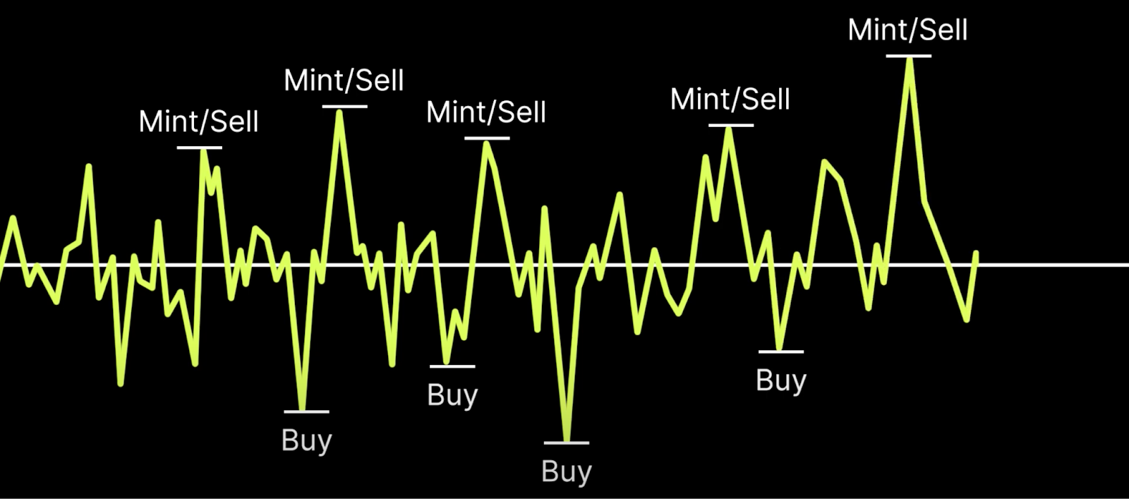 Arbitrageurs take advantage of these opportunities by buying Nuon when trading below the peg and selling it when trading above the peg.