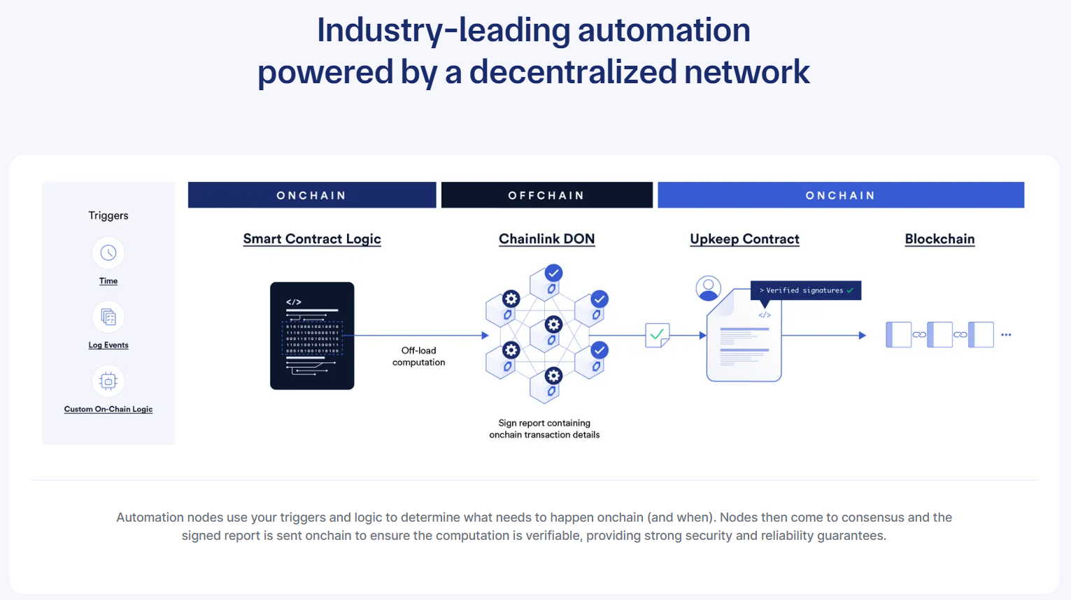 We also used Chainlink Automation and its pool of node operators because of their reputation, reliability, and low gas. The Chainlink Automation Network is operated by the same pool of node operators who continuously secure tens of billions of dollars in DeFi, even during record levels of network congestion and extreme volatility.