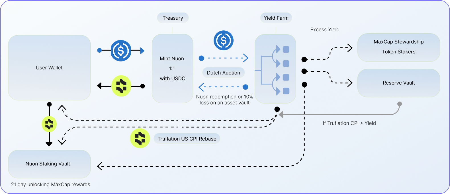 The inflation yields for Nuon holders are currently set at Truflation CPI levels and will likely be expanded in the near future, with Truflation CPI Rate set as a minimum yield. But where does this excess value come from?