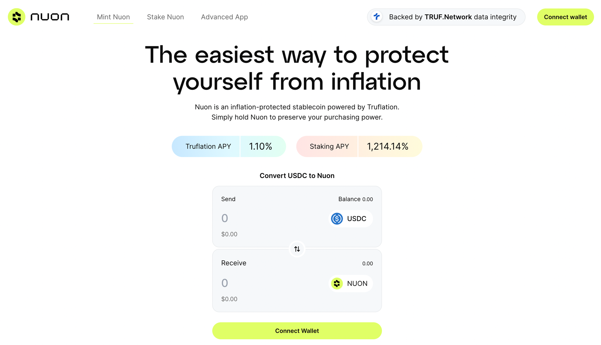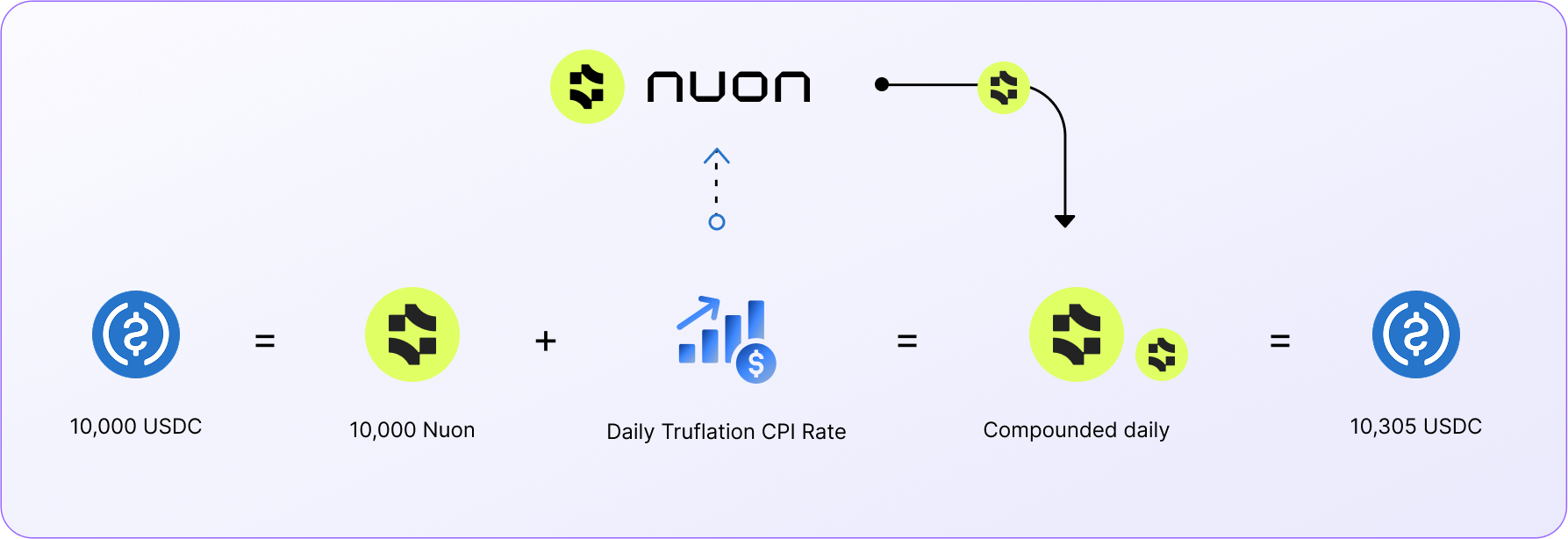 At the heart of Nuon is its inflation-proof mechanism, which ensures that holders receive inflation yields (measured using Truflation CPI rate) directly into their wallets through a positive rebase mechanism.